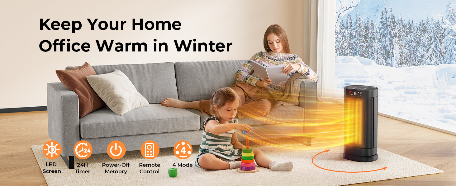 1500W Portable Ceramic Space Heater – Quiet, Energy-Efficient Heating with Remote for Home, Office & Large Rooms